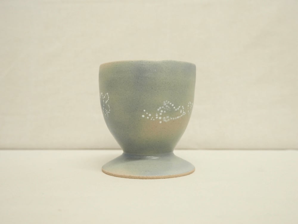 a soft stoneware cup with dotted wingscurling lightly around the body —a small flutter frozen mid-air.