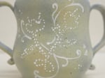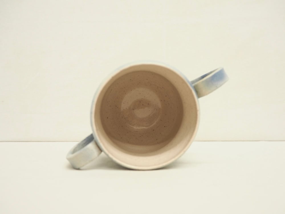 a soft stoneware cup with dotted wingsopening gently on both sides —a flutter caught in slow motion.